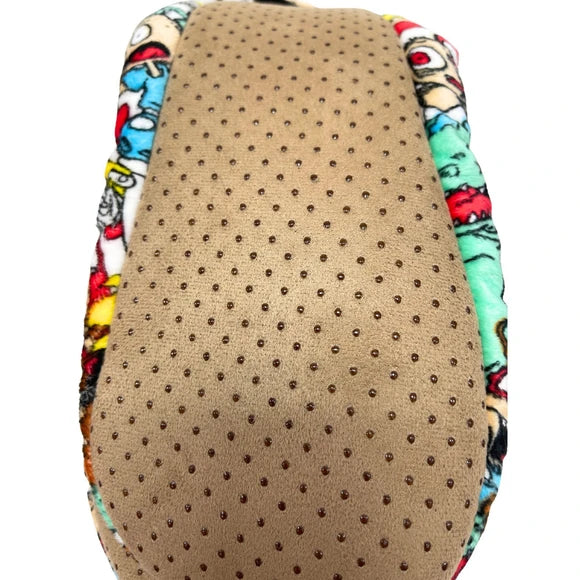 Step into cozy nostalgia with these Fuzzy Babba Men’s 90’s Nickelodeon Slippers, featuring a colorful all-over print of classic cartoon characters like Arnold, Rugrats, and Rocko. Designed for comfort and fun, these soft slippers have a plush fleece lining that keeps your feet warm and snug, while the stretchy opening ensures an easy slip-on fit. The bottom features a grippy, non-slip sole for safe wear around the house. Perfect for lounging, gifting, or reliving your favorite childhood shows, these officially licensed slippers bring retro cartoon comfort to your downtime. Fuzzy Babba 1 Pack Mens Slippers 90's Nickelodeon.